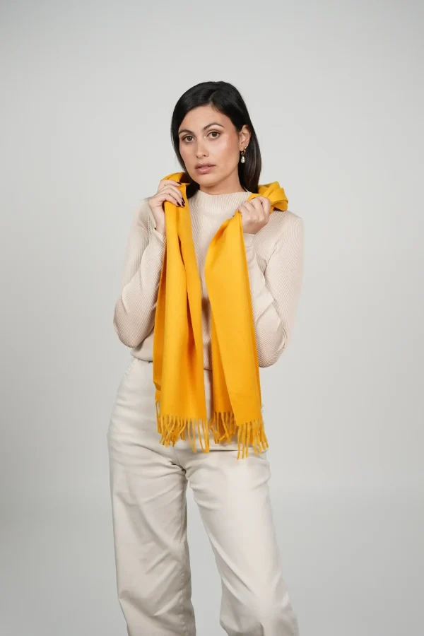 Nuestro bufanda amarilla está hecha de 100% lana de baby alpaca, que ofrece un calor natural y una suavidad que no pica. Ligera y aislante, es ideal para los que quieren una, bufanda de diseño estilizado que mantenga el calor corporal. Su intenso color amarillo añade un refinado toque de color a cualquier atuendo, perfecto para quienes adoran el estilo atemporal con un toque vibrante.