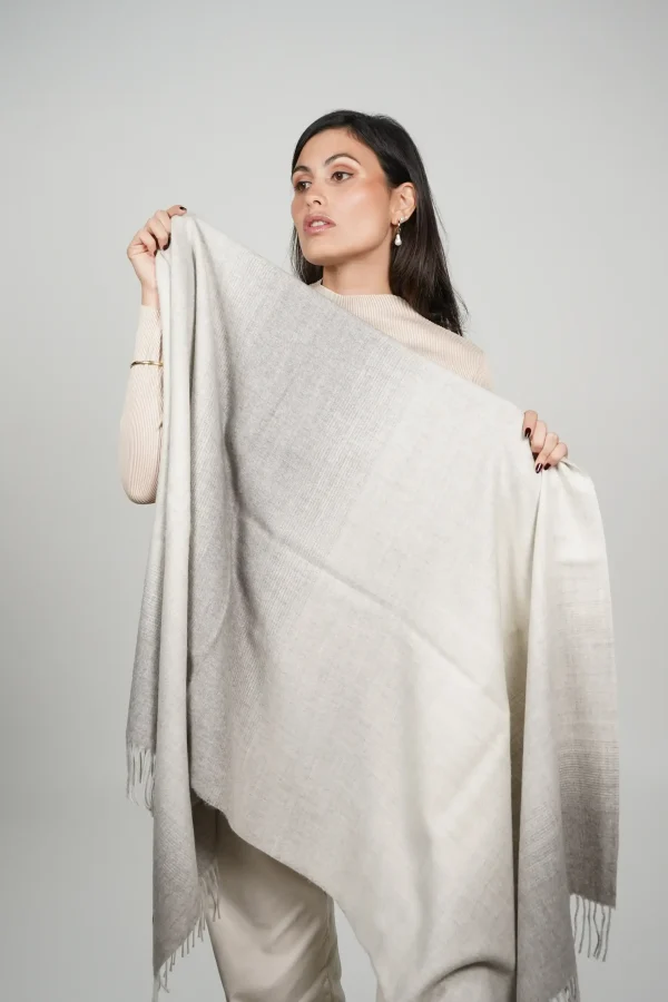 Cada chal se elabora en armonía con los matices naturales de la lana de alpaca, dando como resultado un espectro único de tonos. Nuestro compromiso con la sostenibilidad y el respeto al medioambiente se refleja en nuestro proceso sin tintes ni productos químicos, que conserva el agua y garantiza un proceso de producción responsable.