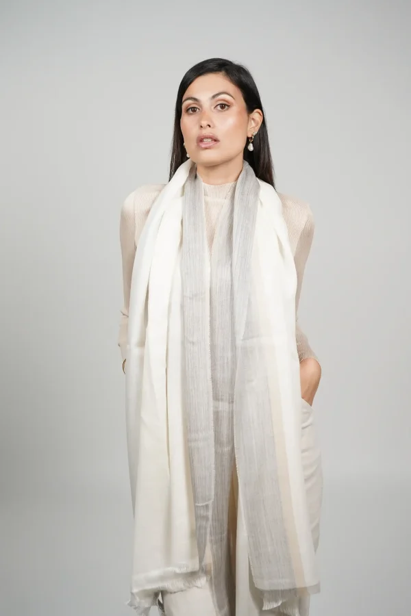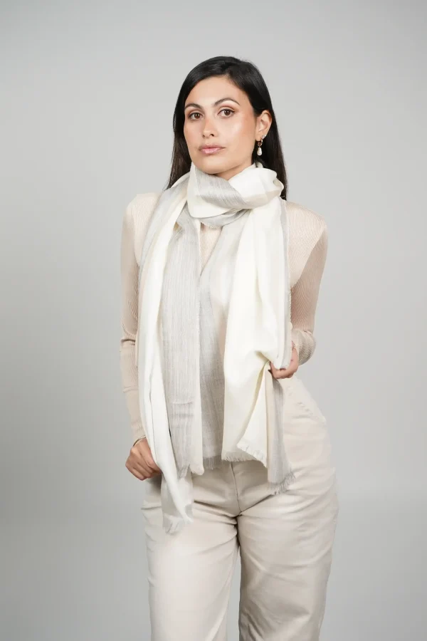 Cada chal se elabora en armonía con los matices naturales de la lana de alpaca, dando como resultado un espectro único de tonos. Nuestro compromiso con la sostenibilidad y el respeto al medioambiente se refleja en nuestro proceso sin tintes ni productos químicos, que conserva el agua y garantiza un proceso de producción responsable.