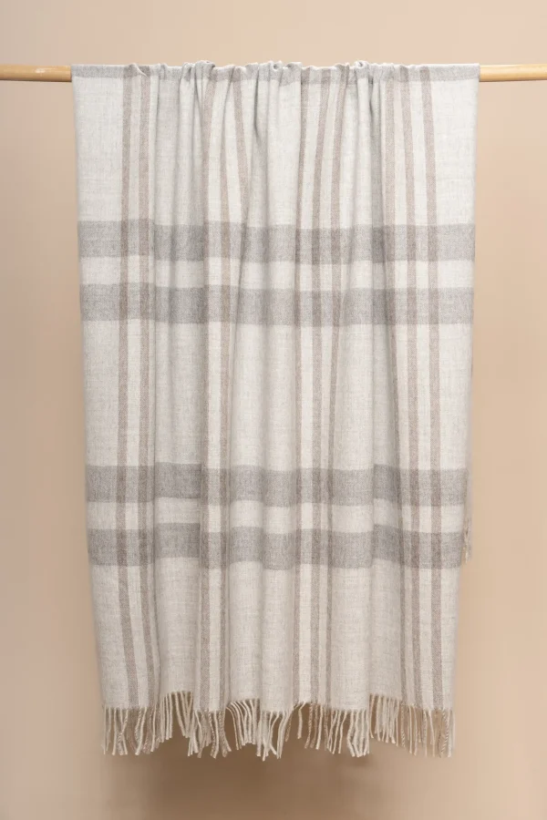 Plaid de alpaca a cuadros gris claro